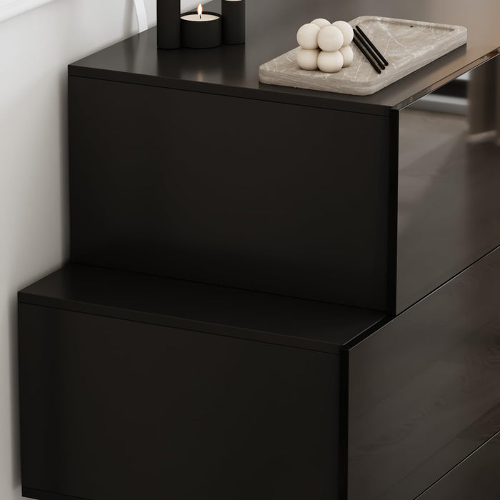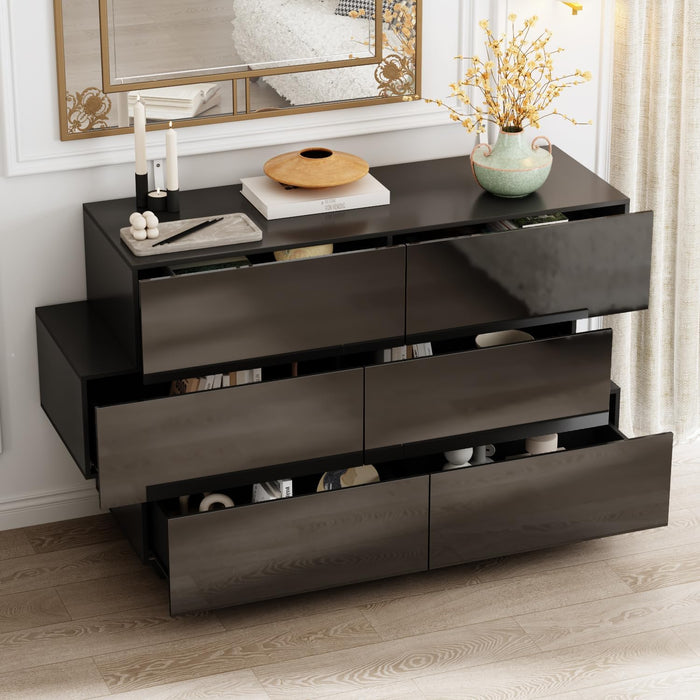 Turn clutter into a confident statement with the Black 6-Drawer Dresser—a warm blend of modern style and everyday practicality. The high-gloss drawer fronts deliver a luxe look, while six roomy drawers keep clothes, accessories, and essentials neatly tucked away.