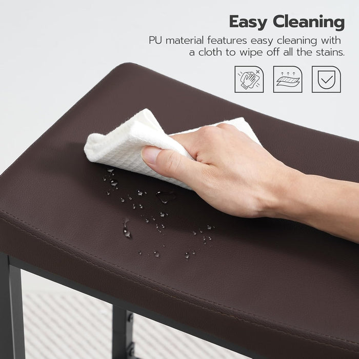 • Specifications: Size 16.5" L x 11.8" W x 24.8" H; Weight 16 lbs; Max weight capacity 265 lbs; Materials: Iron, high-density sponge, PU, particleboard; Colors: Brown or Black.