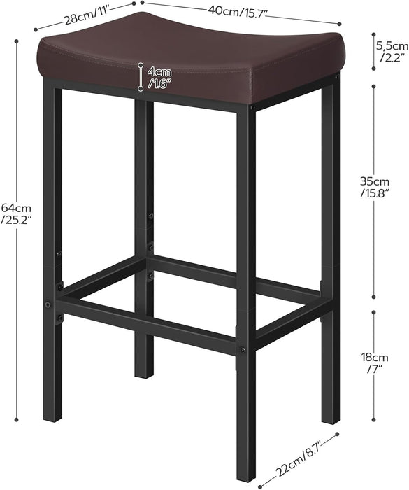Saddle Bar Stools Set Of 2 Counter Height 24.8 Inches Brown And Black