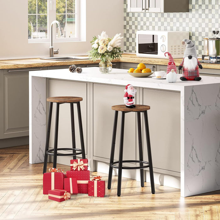 Transform your kitchen or dining area with a stylish, space-saving pair of rustic bar stools. The Bar Stools Set of 2 combines comfortable seating with a timeless rustic brown top and a durable black metal frame, making them ideal for counters, breakfast bars, or casual dining spaces.