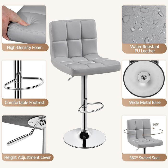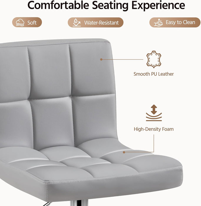 Upgrade your dining and entertaining spaces with our light gray PU leather adjustable bar stools—a stylish, durable pair built for counter-height tables and home bars. Comfort meets contemporary design to elevate every gathering.