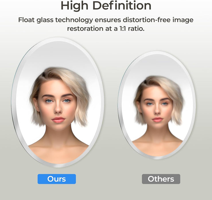 - Frameless oval design delivers a clean, modern silhouette that blends with any decor.