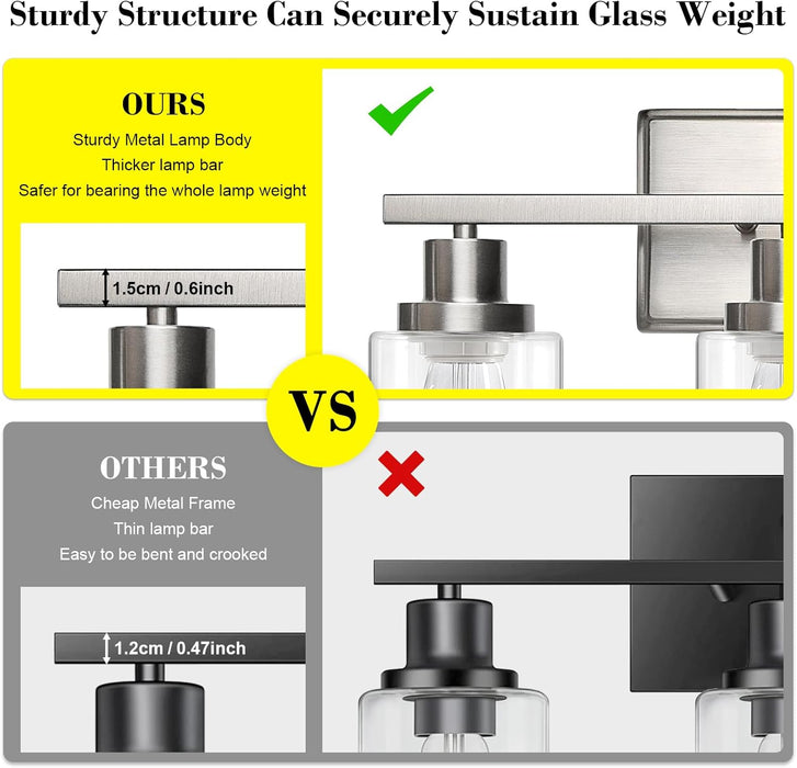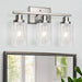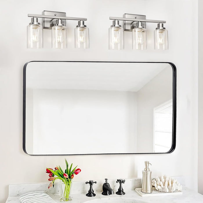 Brighten your space with a three-light bathroom vanity wall sconce that blends modern edge with timeless warmth. Crafted with a sturdy metal body, brushed nickel finish, and clear glass shades, this wall light elevates mirrors, kitchens, and living areas with clean, inviting illumination.