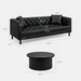Black Button-Tufted Sofa and Round Tambour Coffee Table – Mid-Century 2-Piece Living Room Bundle