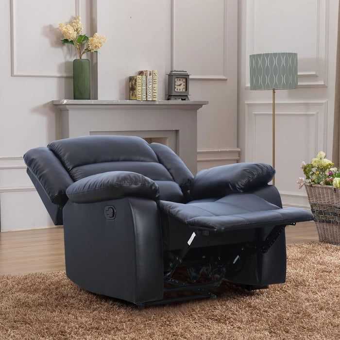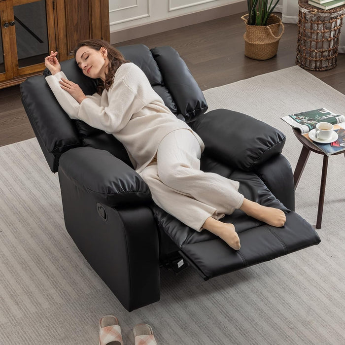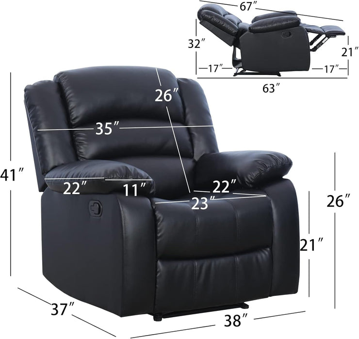 Black Recliner Chair Set of 2 With Overstuffed Cushions