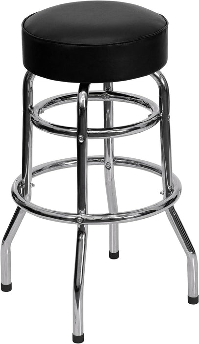 Bruno 2 Pack Bar Stool Chrome Double Ring Black Seat