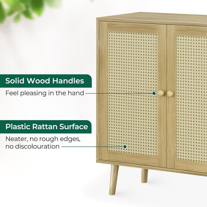 Storage Buffet Cabinet With Rattan Doors And Natural Finish