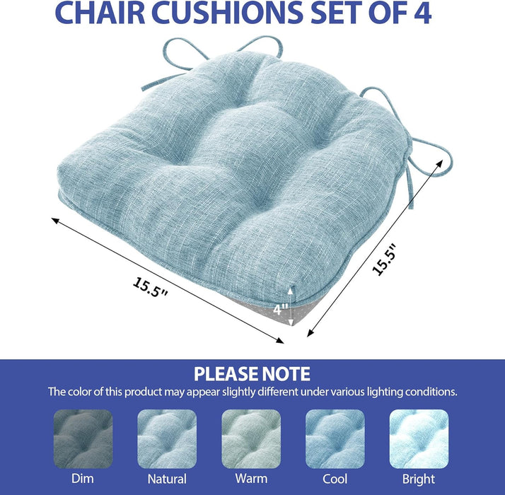 Baby Blue Memory Foam Dining Chair Cushions Set Of 4 15.5x15.5x4