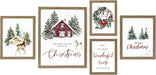 • 5-piece framed Christmas wall art set with prints in multiple sizes (14x11, 10x8, 8x6 inches) for flexible wall arrangements.