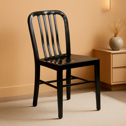 Durable, versatile seating that shines indoors or outdoors. The commercial-grade black metal dining chair combines rugged galvanized steel with a glossy finish, delivering an industrial-chic look that fits kitchens, patios, cafés, and hospitality spaces.