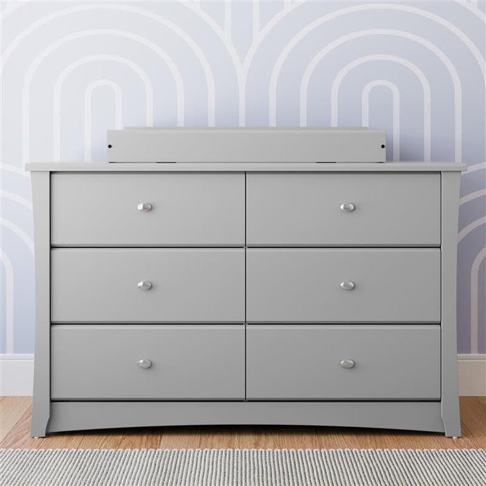 Turn clutter into calm with the Crescent 6 Drawer Double Dresser in Pebble Gray. This GREENGUARD Gold certified, safety-tested dresser is a stylish, durable storage solution for nurseries and kids’ rooms that grows with your child.