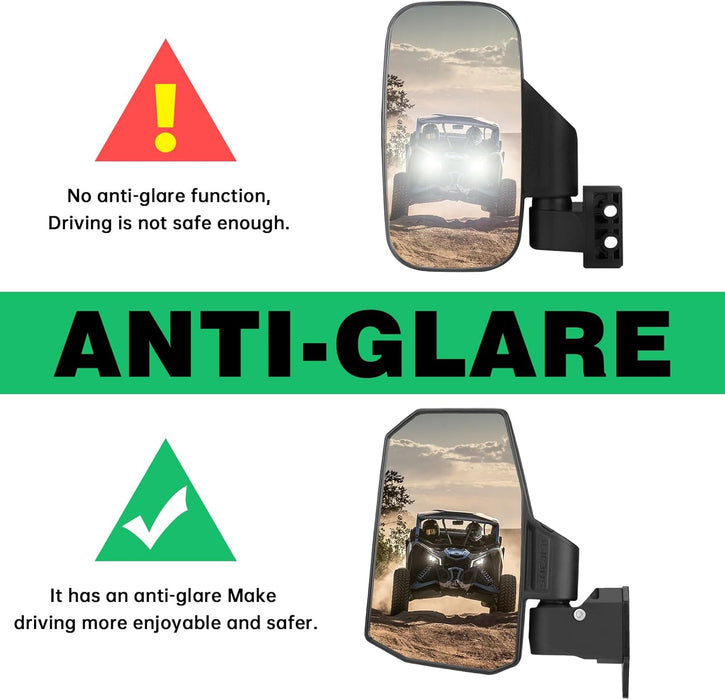 Designed for the Can-Am Defender lineup and compatible with all Defender models—including doorless, half-door, full-door, and even full-door conversions—we've built a versatile upgrade that fits your setup. Crafted with a high-quality ABS mirror housing and a convex glass surface that’s explosion-proof and anti-glare, these mirrors are built for rugged UTV use. The result is a durable, reliable upgrade that enhances every drive.