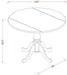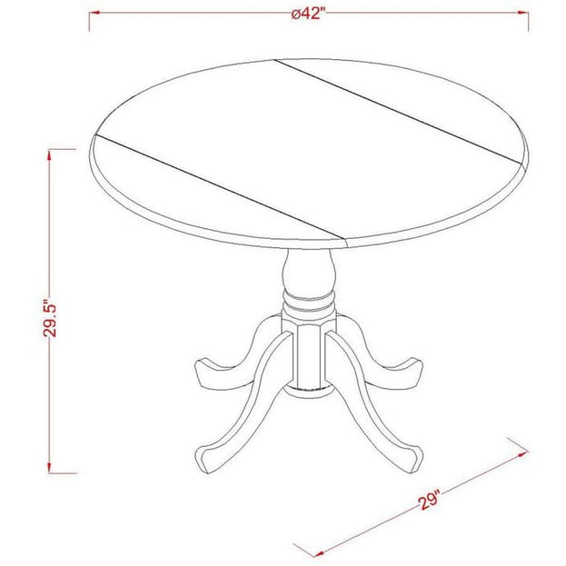 - Detailed dimensions — dining table: 42" diameter x 29.5" H; chairs: 21" L x 18" W x 37" H.
