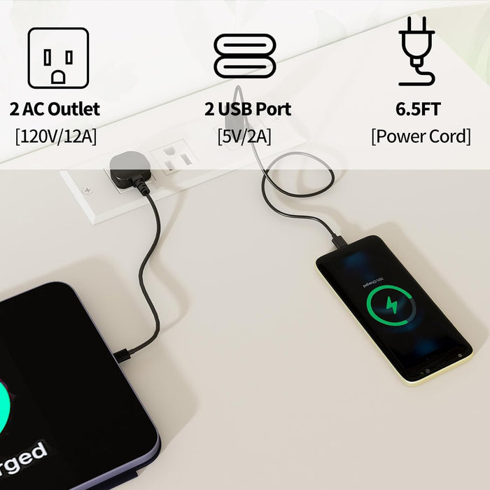 - Built-in charging station with 2 USB ports and 2 AC outlets powers devices without cable chaos.