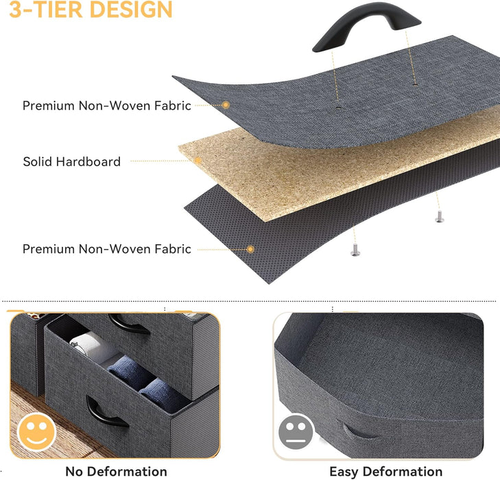 Maximize space without compromising style with the DWVO tall dresser—a fabric dresser with 8 drawers that blends versatility with durability for any room.