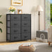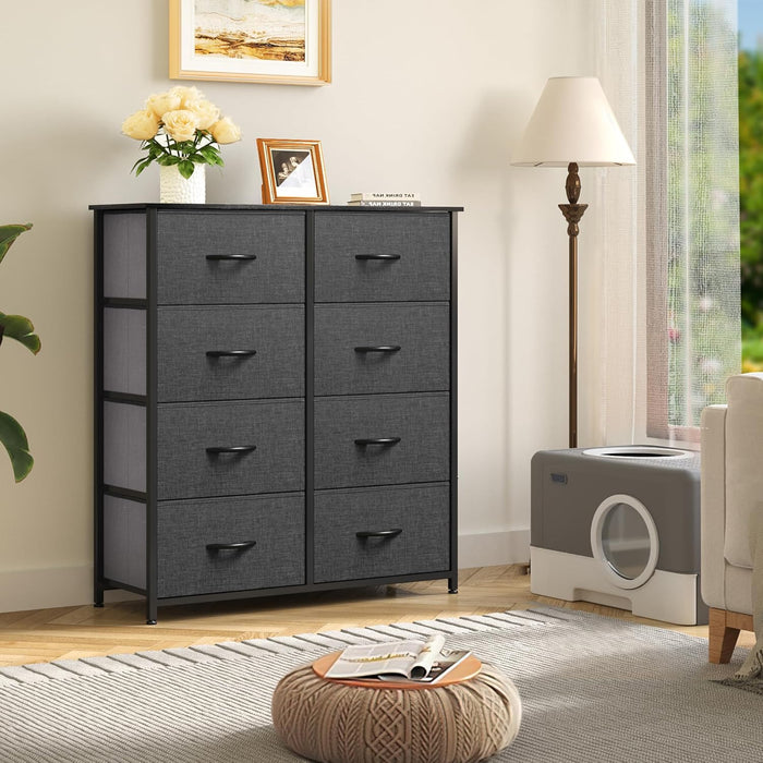 Designed for bedrooms, closets, dorms, entryways, and living areas, this non-woven fabric dresser features eight deep drawers and a sturdy construction with a wooden top that doubles as a display surface for lamps, photos, or decor.
