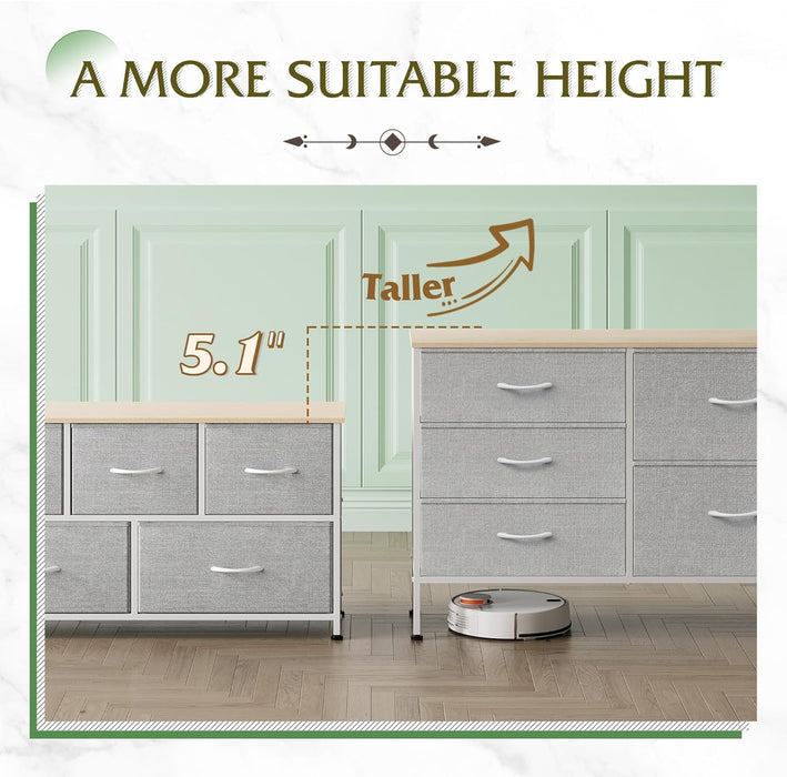 Refresh your space with a light grey fabric dresser that blends stylish storage with everyday practicality. This versatile 5-drawer unit is ideal for bedrooms, closets, living rooms, hallways, dorms, and offices—and it can even serve as a compact TV stand for small televisions, freeing surface space when you need it most.