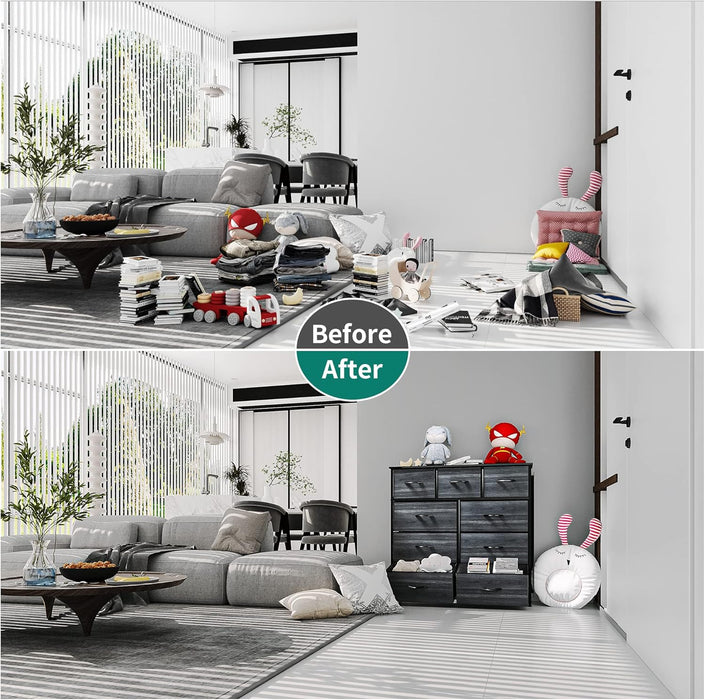 Transform clutter into calm with a tall fabric dresser that blends generous storage with surface-worthy style. The 9-drawer dresser fits seamlessly in bedrooms, living rooms, entryways, or closets, helping you reclaim space without sacrificing design.