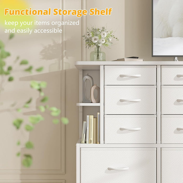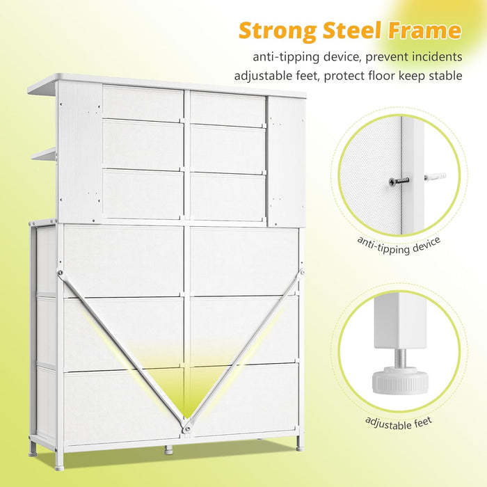 White Bedroom Dresser With LED Lights And 12 Deep Drawers