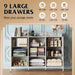- Massive storage: 9 deep fabric drawers keep items organized and neatly tucked away.