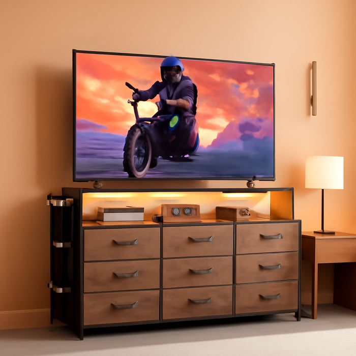 Transform your space into a calm, organized haven with ambient lighting that complements your mood—perfect for movie nights, late-night reading, or cozy mornings. This dresser TV stand blends practical storage with a warm, design-forward look that enhances any room.