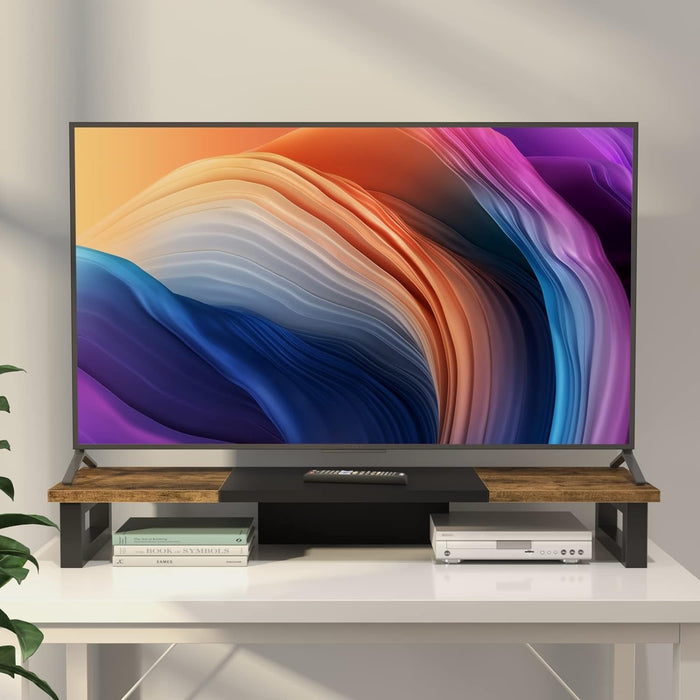 Designed for home offices, living rooms, kitchens, and bedrooms, this monitor riser brings order to any workspace while enhancing the aesthetic with a rustic-urban vibe. It’s an ideal desktop storage stand for computer, laptop, printer, and television needs.
