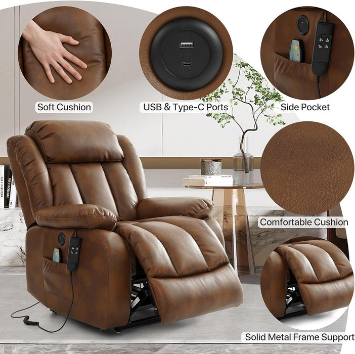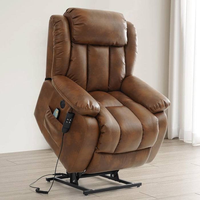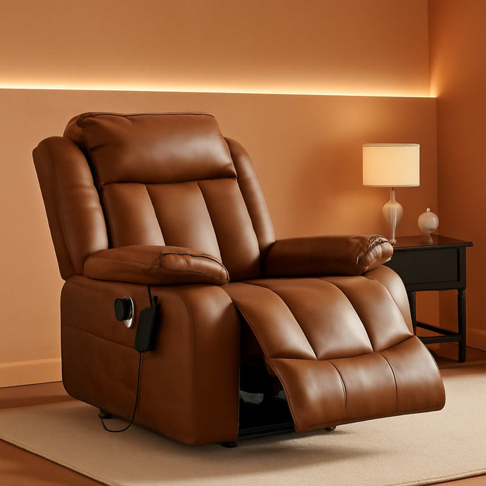 Stand up with ease and enjoy luxurious comfort that adapts to you. The Dual Motor Large Power Lift Recliner Chair delivers independent backrest and footrest control, built-in heat, and full-body massage in a breathable Ochre leather—making every moment of rest effortless and restorative.