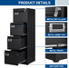 Lockable 4 Drawer Vertical File Cabinet Black Metal For Home Office