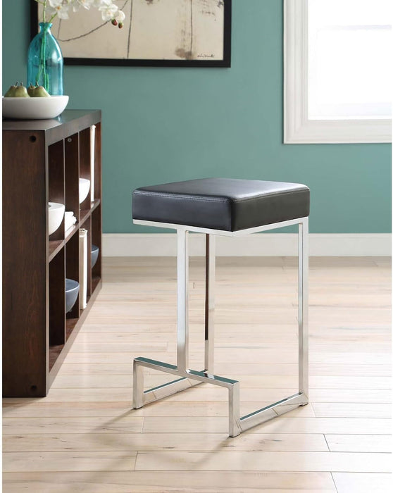Gervase Square Counter Height Bar Stool Black Chrome Leatherette