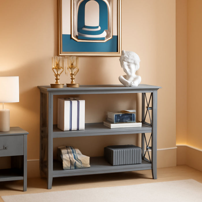 Gray Three Tier Console Table With Storage Shelves