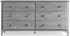 Six roomy drawers offer ample storage, each 6 3/4” deep to handle folded garments, accessories, and more. Drawers glide smoothly on sturdy metal guides and wear replaceable metal knobs that stay fresh with changing styles.