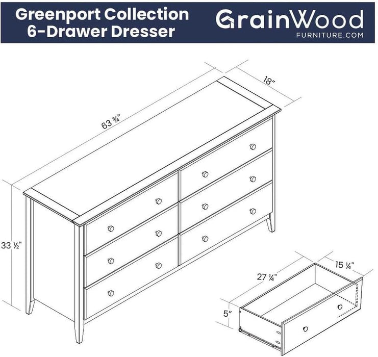 Transform your bedroom with coastal charm and organized storage. The Greenport 6-Drawer Bedroom Dresser brings timeless, modernized traditional style to your space, crafted in 100% solid pine and finished in brushed white for a clean, versatile look.