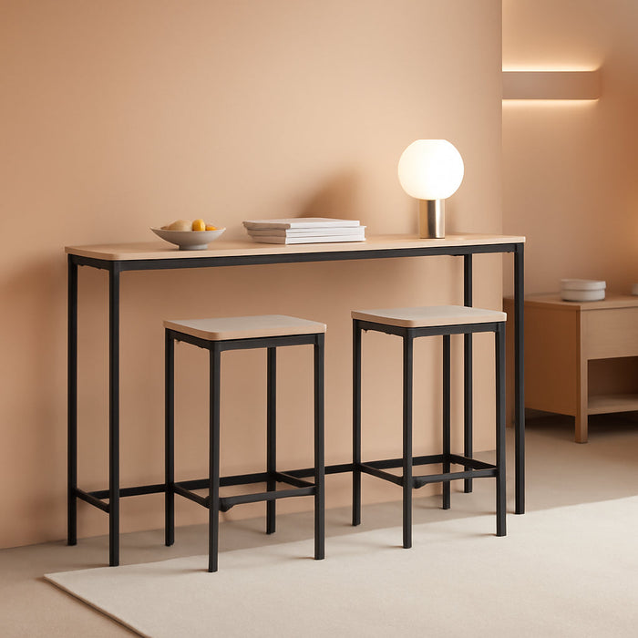 Greige Rectangular Industrial Bar Chairs (Set of 2) deliver durable, space-saving seating with retro-industrial charm for kitchens, bars, cafes, or patios. Crafted with a particleboard seat and thickened metal legs, these counter stools are built to last and confidently support up to 330 lb (150 kg).