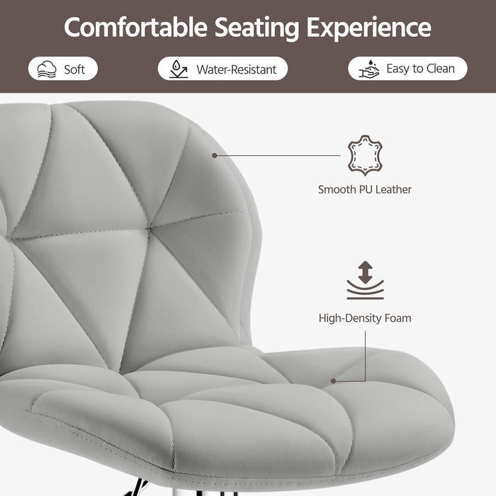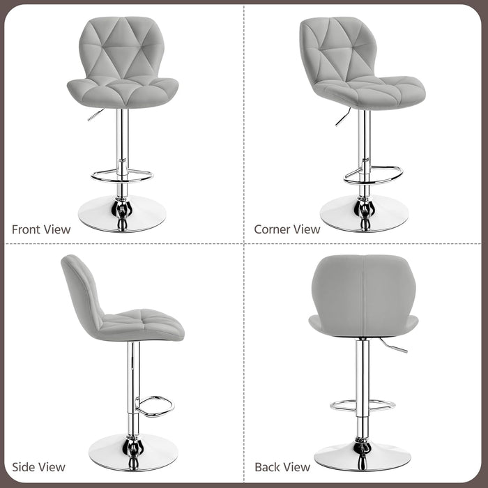 Grey PU Leather Bar Stools Set Of 2 Adjustable Height