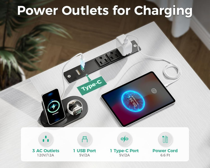 • Built-in power outlet: 3 AC outlets, 1 USB port, and 1 Type-C port to charge devices while you work or game.