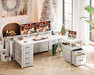 L Shaped Computer Desk 6 Drawers Power Outlet 55In White