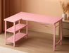 With its thoughtful storage, flexible design, and space-saving footprint, this pink L-shaped desk helps you stay organized and focused. Create a streamlined home office, study nook, or gaming corner where everything you need is within reach and your environment reflects your personal style.