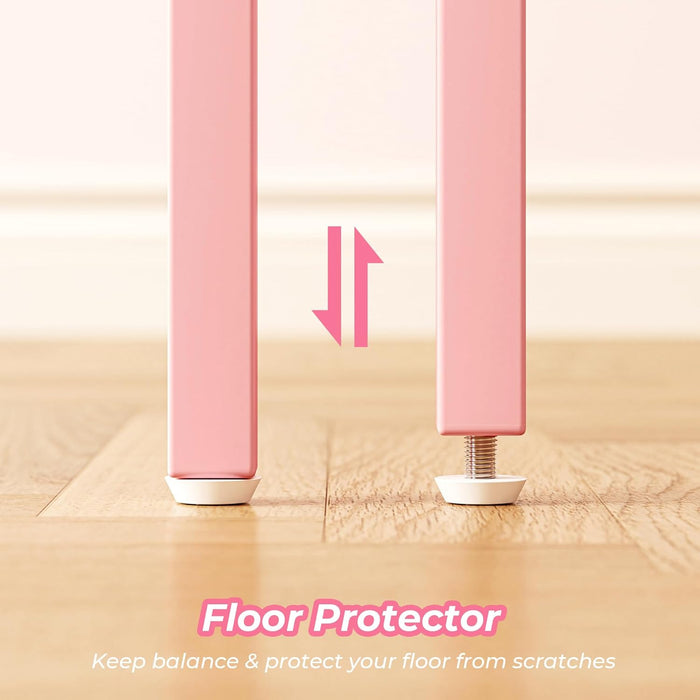 Crafted with a durable particleboard desktop and a sturdy metal frame, this corner desk offers reliable, long-lasting support. The chic pink finish adds a touch of personality to any room, while remaining easy to clean with a damp cloth.