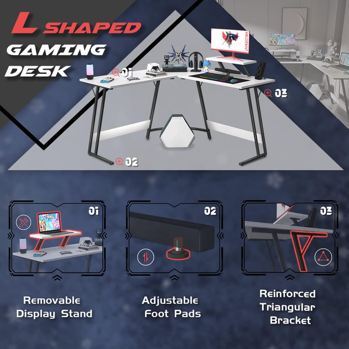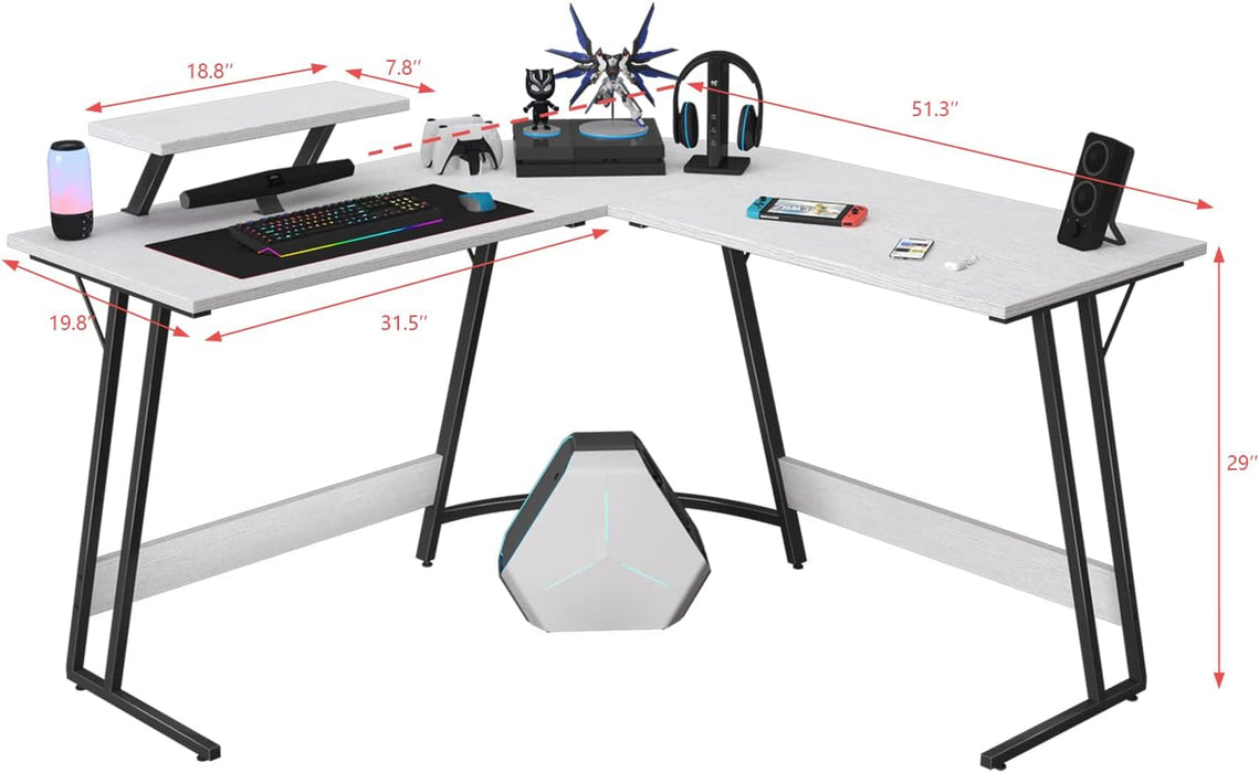 L Shaped Gaming Desk 51 Inch Monitor Riser Classical White
