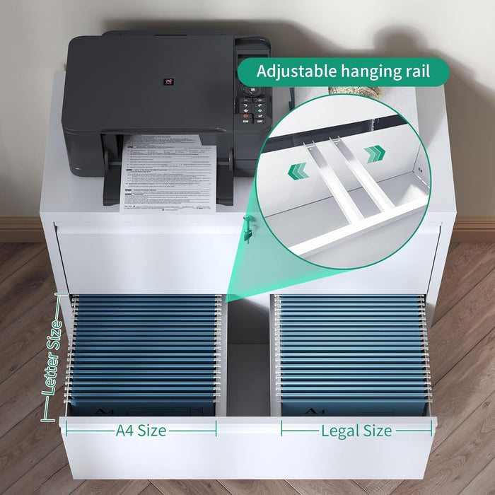 Transform your home office with a spacious, secure metal lateral file cabinet that makes Legal, Letter, and A4 documents effortlessly organized. This wide steel storage cabinet blends robust construction with smooth, quiet operation, giving you reliable file management and a calmer workspace.