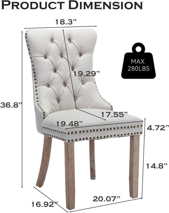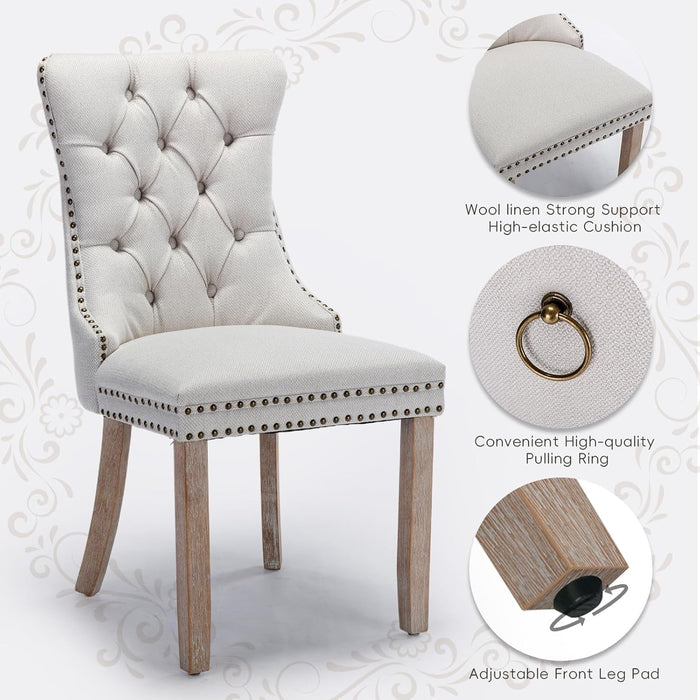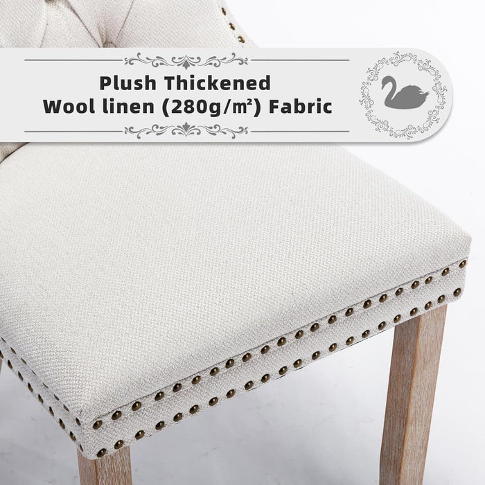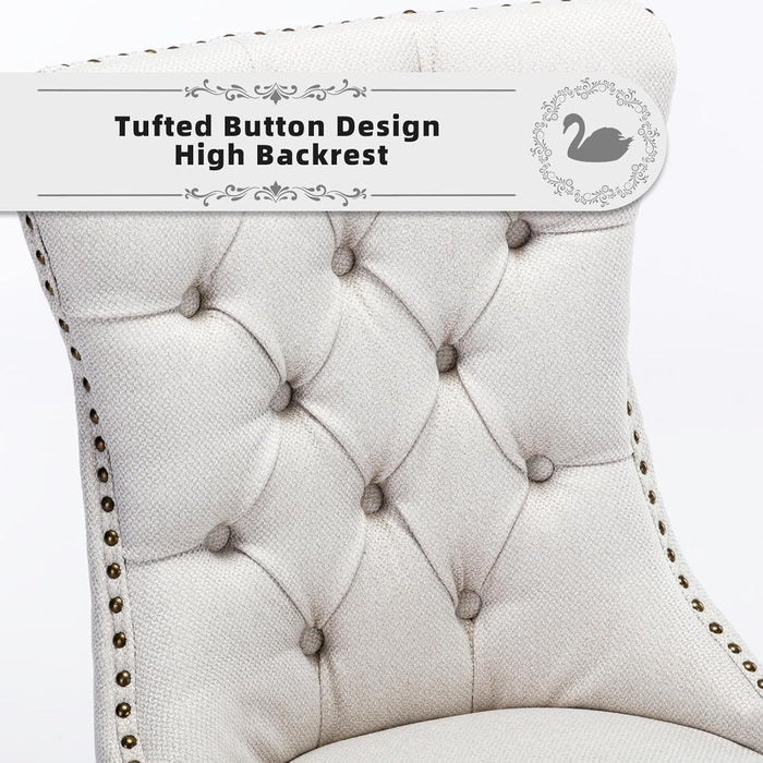 Beige Linen Dining Chairs Set Of 4 With Nailhead Trim