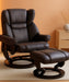 The chair’s sleek faux leather finish paired with a stylish round wood base brings contemporary flair to any living space. It’s built to support everyday life, whether you’re unwinding after work, enjoying a movie night, or curling up with a good book.