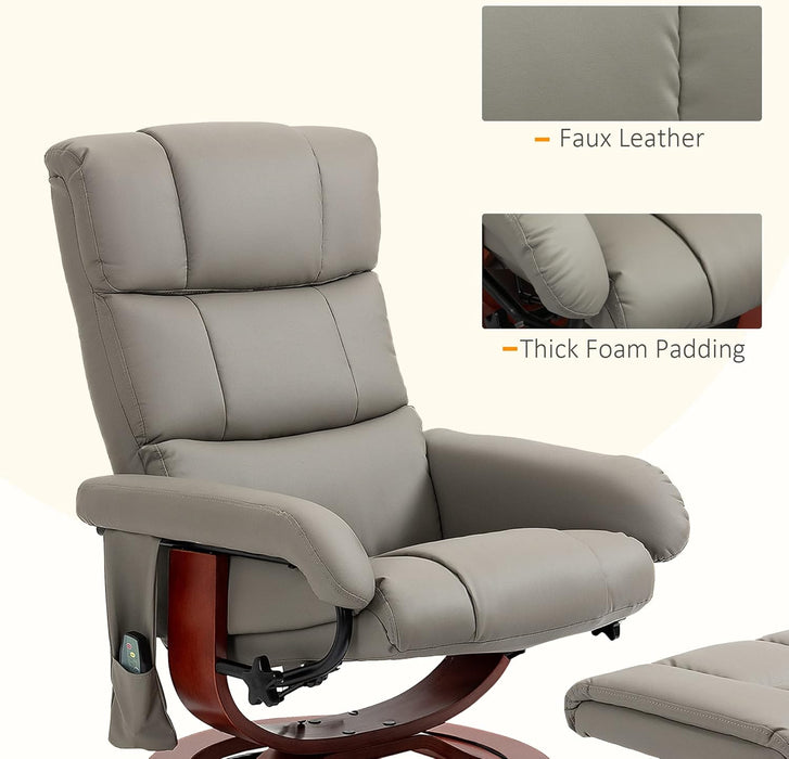 Turn every moment into a personal escape with the Massage Recliner Chair with Ottoman. This gray, faux leather recliner blends soothing massage, effortless recline, and a modern silhouette to create a welcoming retreat in your living room or home office.