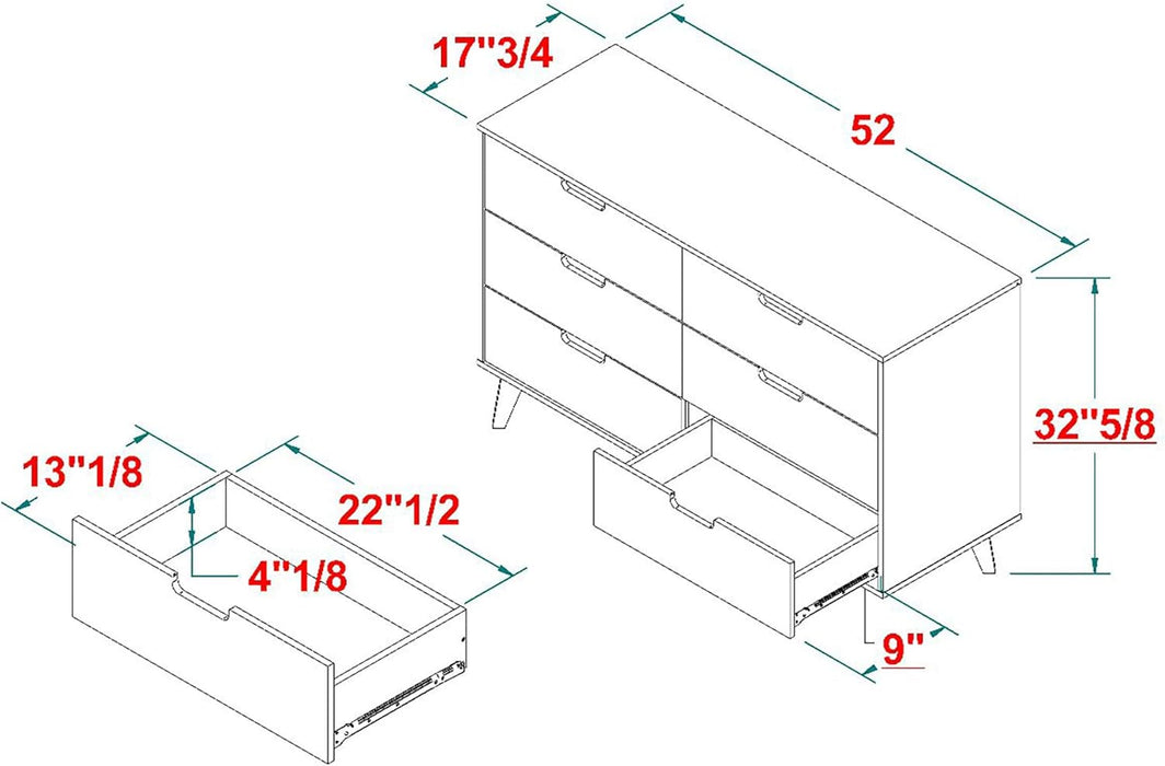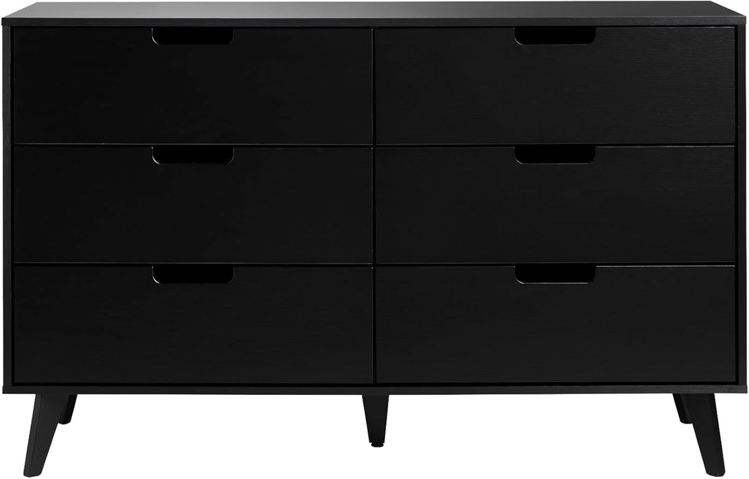 Modern Six Drawer Dresser Black 52 Inch Bedroom Storage