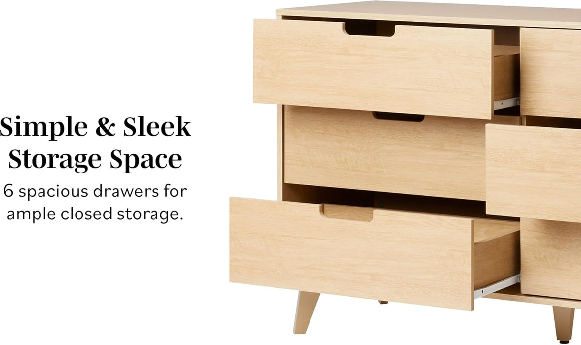 Transform your bedroom with a spacious, stylish storage solution that keeps outfits organized and within easy reach. The Modern 6-Drawer Dresser in Riviera blends mid-century charm with everyday practicality, acting as a centerpiece and a workhorse for your wardrobe.