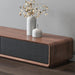 Compact yet capable, this TV stand doubles as a versatile media console, perfect for living rooms or bedrooms where style and function matter. The walnut and black finish adds a touch of sophistication to any decor, from modern to transitional.