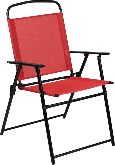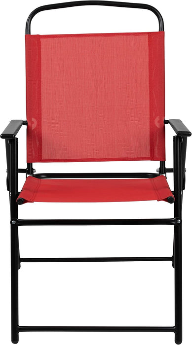 - Four folding chairs feature breathable textilene fabric, offering lightweight comfort for all-weather use; chairs ship fully assembled for instant enjoyment.