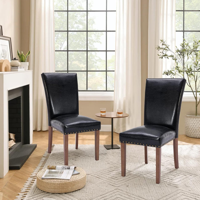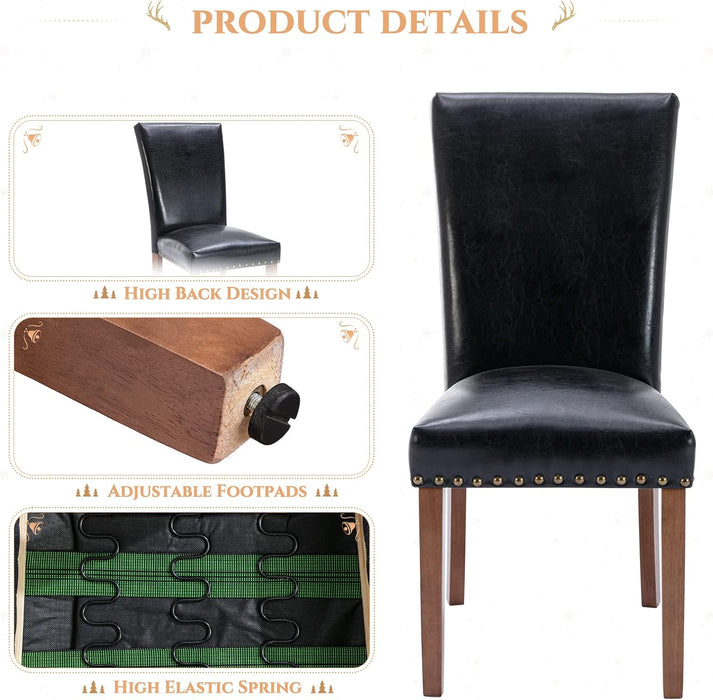 Parsons dining chairs Set of 4 blend classic elegance with modern comfort, turning meals into moments of hospitality in your dining room or kitchen. Upholstered in durable PU leather with decorative nailhead trim, these high-back side chairs bring sophisticated charm to any table while keeping things comfortable and inviting.