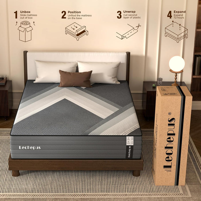 10 Inch Medium Firm Hybrid Queen Mattress in Box by Our Brand delivers unparalleled comfort and support for a restful night's sleep. Designed for those who crave a firmer feel, this queen mattress combines dense memory foam with a robust pocket coil system to enhance your sleeping experience.