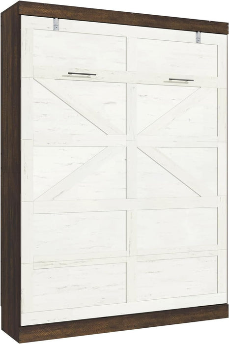 Queen Size Murphy Bed With LED Lights Rustic White Finish